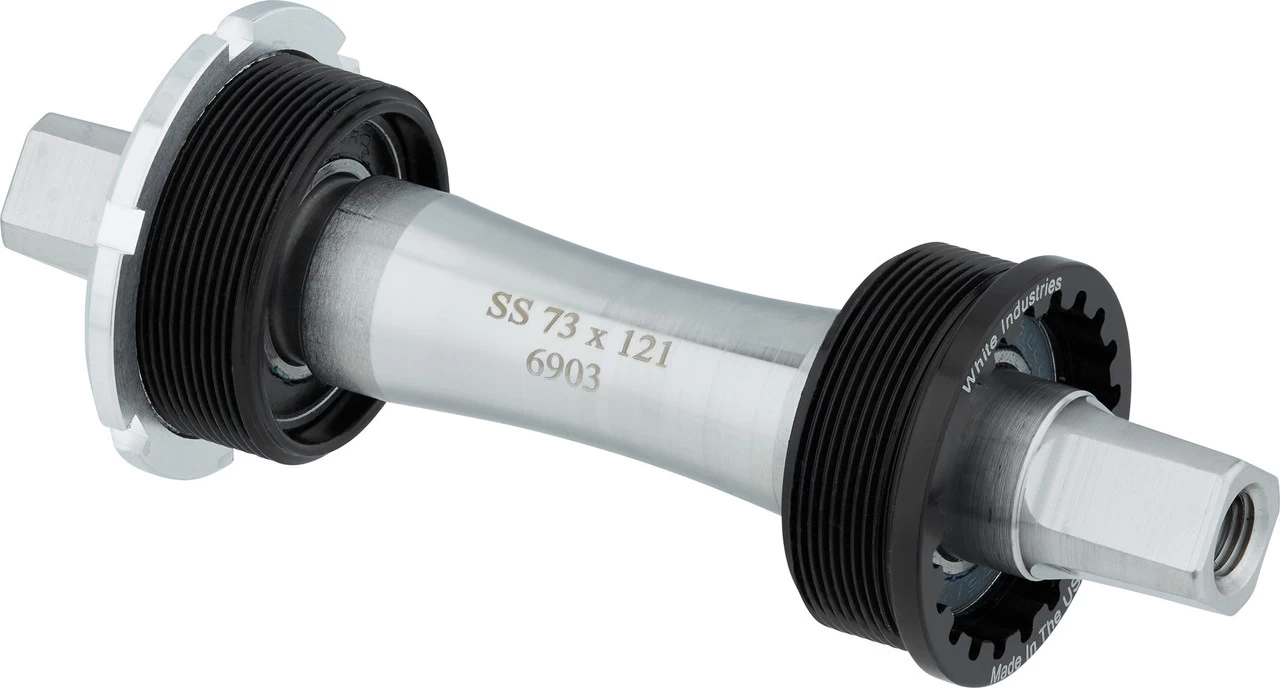 Klassisches JIS Vierkant Innenlager von White Industries mit Achse aus Edelstahl und einstellbaren zweireihigen Schrägkugellagern.