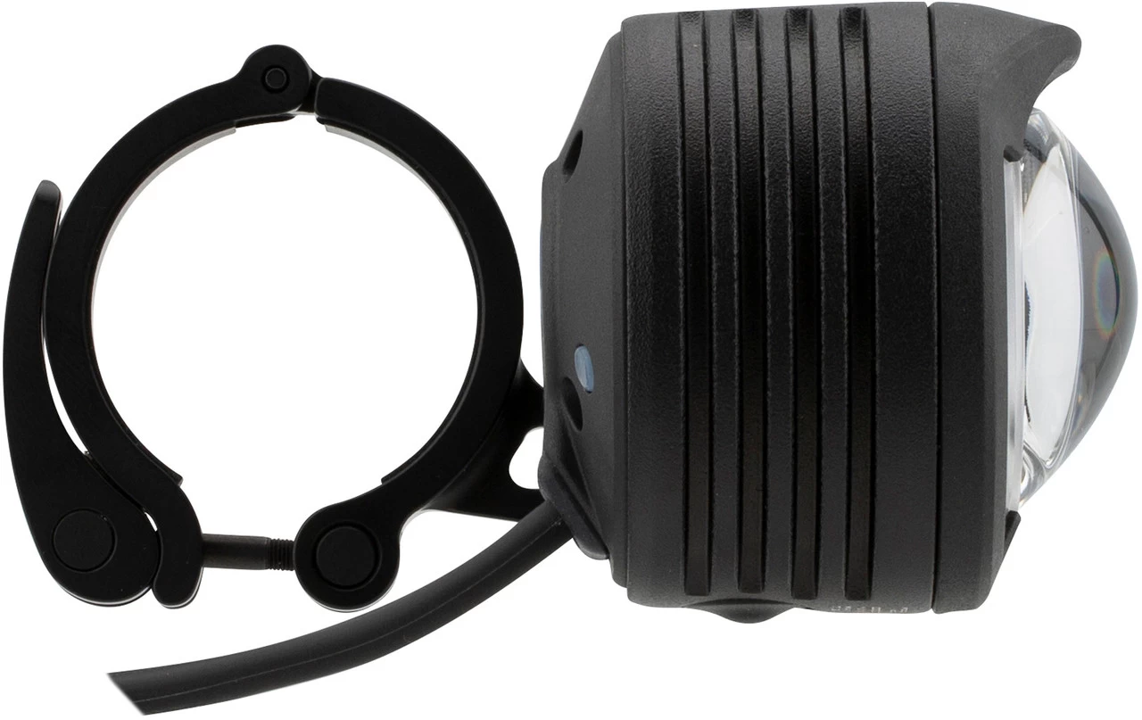 Spezifikationen:Ausführung:Frontlicht (weiß)Montage:Lenkerhalterung (31,8 mm)Leuchtmittel:18 x Osram Compact CL LEDLeuchtkraft:1300 Lumen (Fernlicht), 1000 Lumen (Abblendlicht 16 W), 650 Lumen (Abblendlicht 8 W), 0 Lumen (Tagfahrlicht)Leuchtdauer:1:30 (1300 Lumen) bis 17:00 StundenBetriebsmittel:Akku (Li-Ion)Technische Daten Lampe:Leuchtmodi:Fernlicht 16 W, Abblendlicht 16 W, Abblendlicht 8 W, Tagfahrlicht 1,5 WSchutzklasse:IP 68 (Wasserdichtigkeit), IK 09 (Schlagfestigkeit)Maße (H x B x T):48 x 50 x 49 mmMaterial:Aluminium 6061-T6; CnC gefrästSchalter: