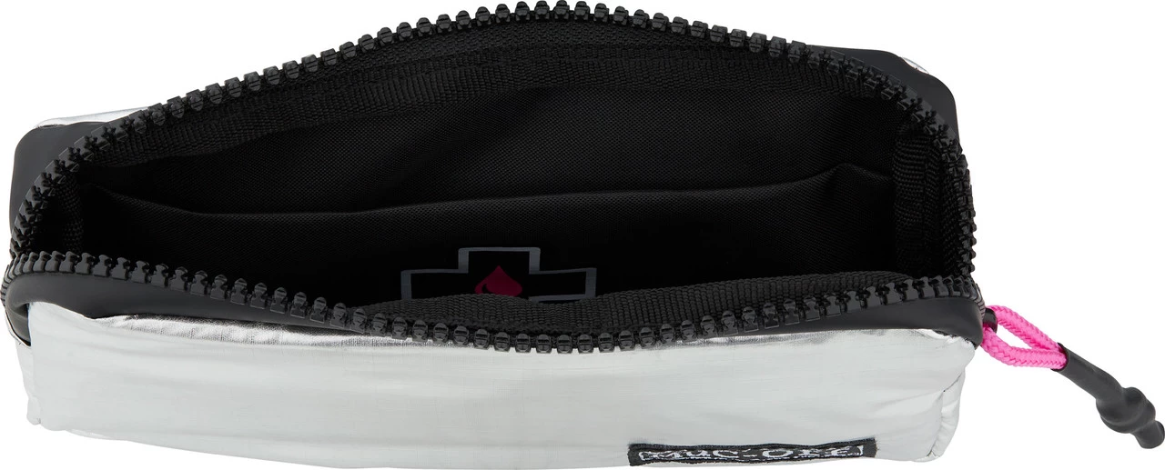 Die Essential Case Werkzeugtasche von Muc-Off kannst Du entweder an Deinem Rucksack oder anderen Gepäcktaschen befestigen oder Du steckst sie einfach hinten in Deine Trikottasche.