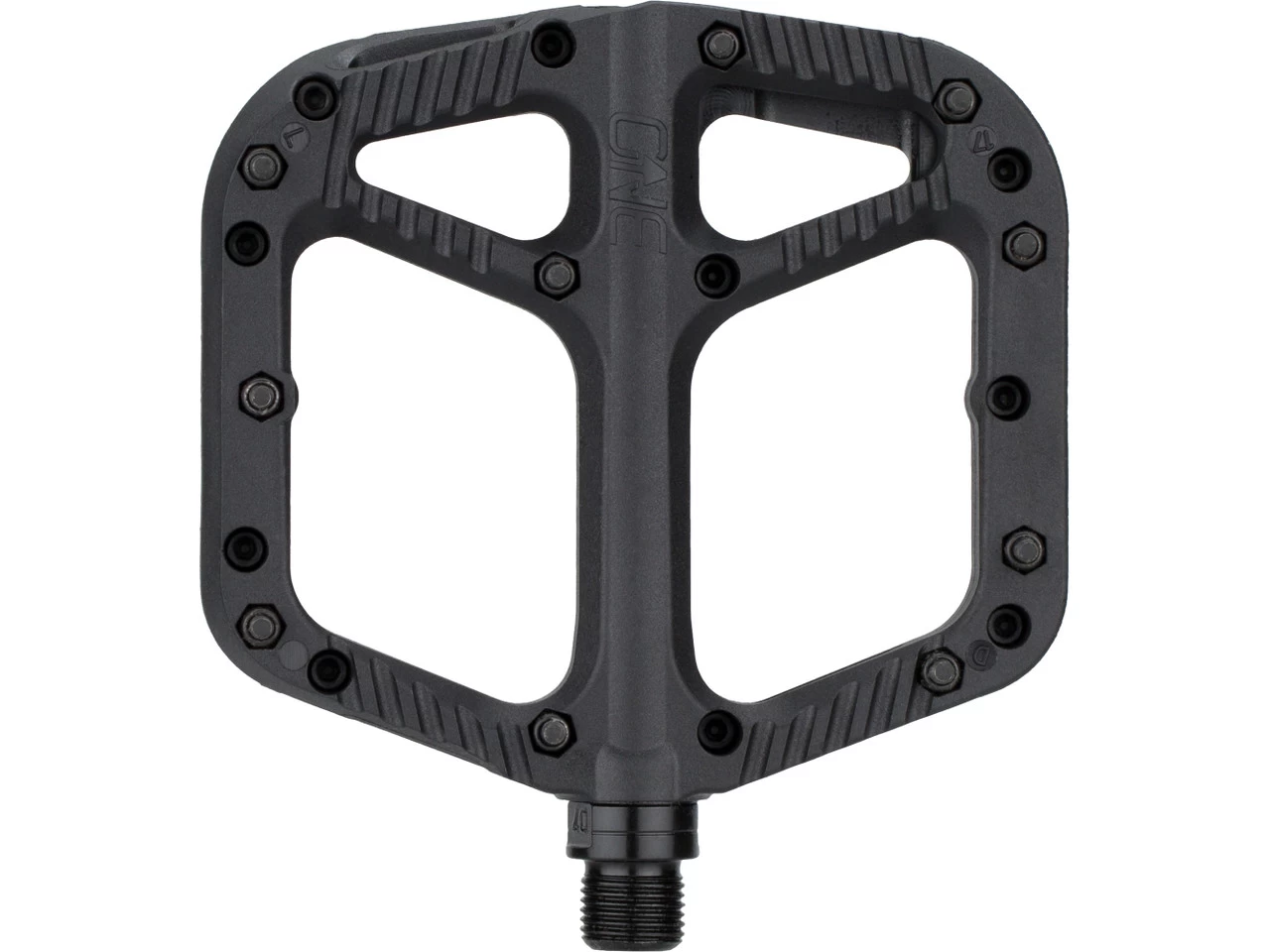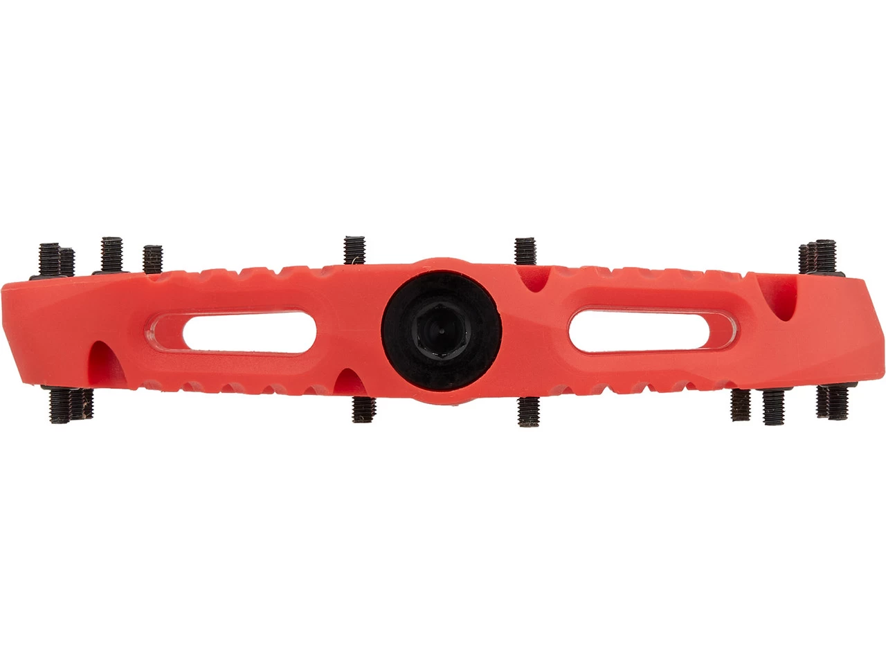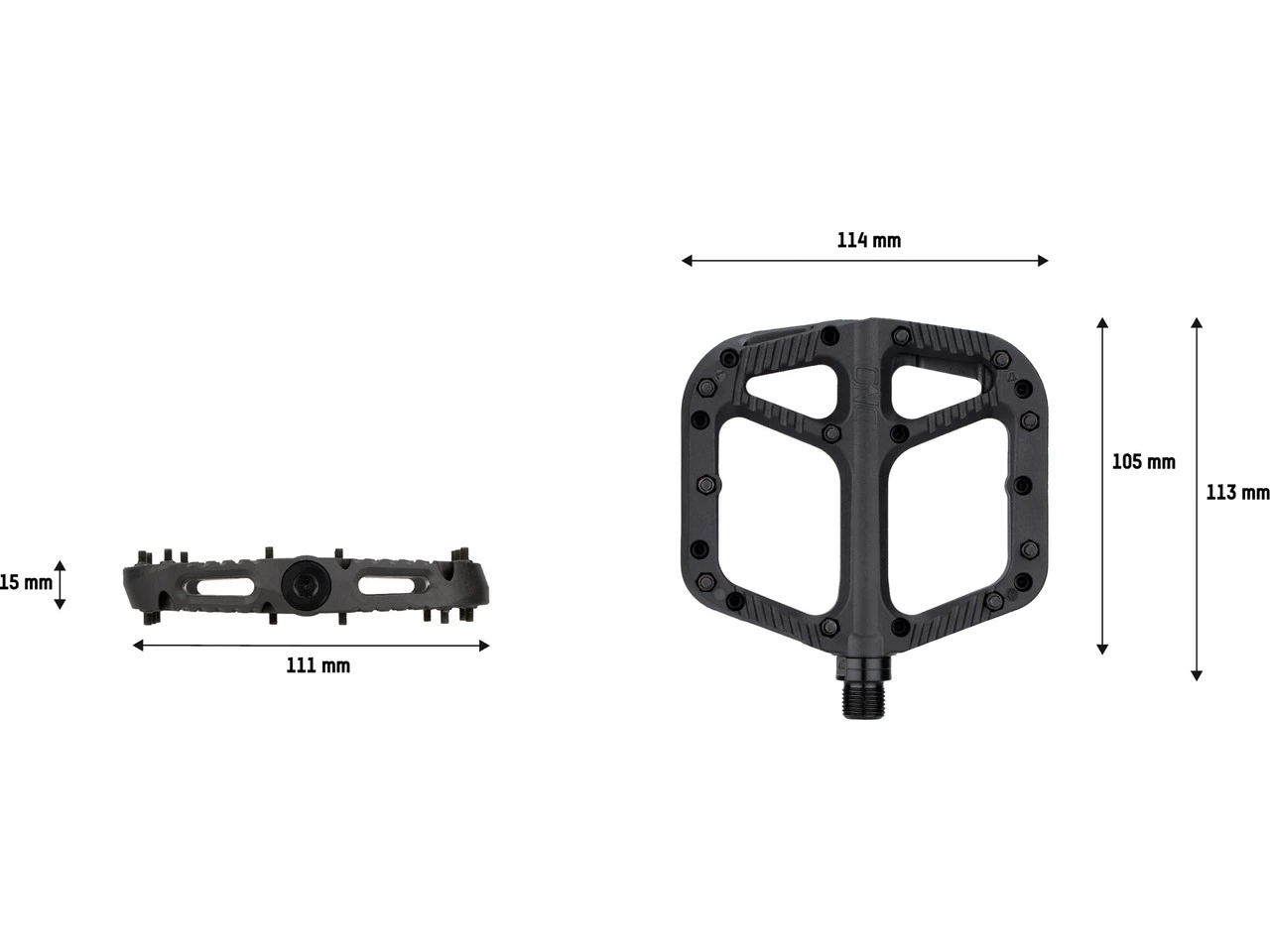 Spezifikationen:Einsatzbereich:All Mountain, Enduro, DownhillAusfĂĽhrung:PlattformpedaleTechnische Daten:Material Pedalkörper:Kunststoff (Nylon Komposit)Material Achse:Stahl (CrMo)Lagerung:DU, IndustrielagerBauhöhe:13,3 – 18,5 mmMaĂźe (Länge x Breite):115 mm x 105 mm*Anzahl Pins pro Pedal:20