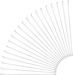 Sapim bietet die konifizierten Race J-Bend Speichen – hier im 20er Pack – auch mit einer Bogenlänge von 2,9 mm an, wie sie zum Einspeichen einer Rohloff Speedhub benötigt wird.