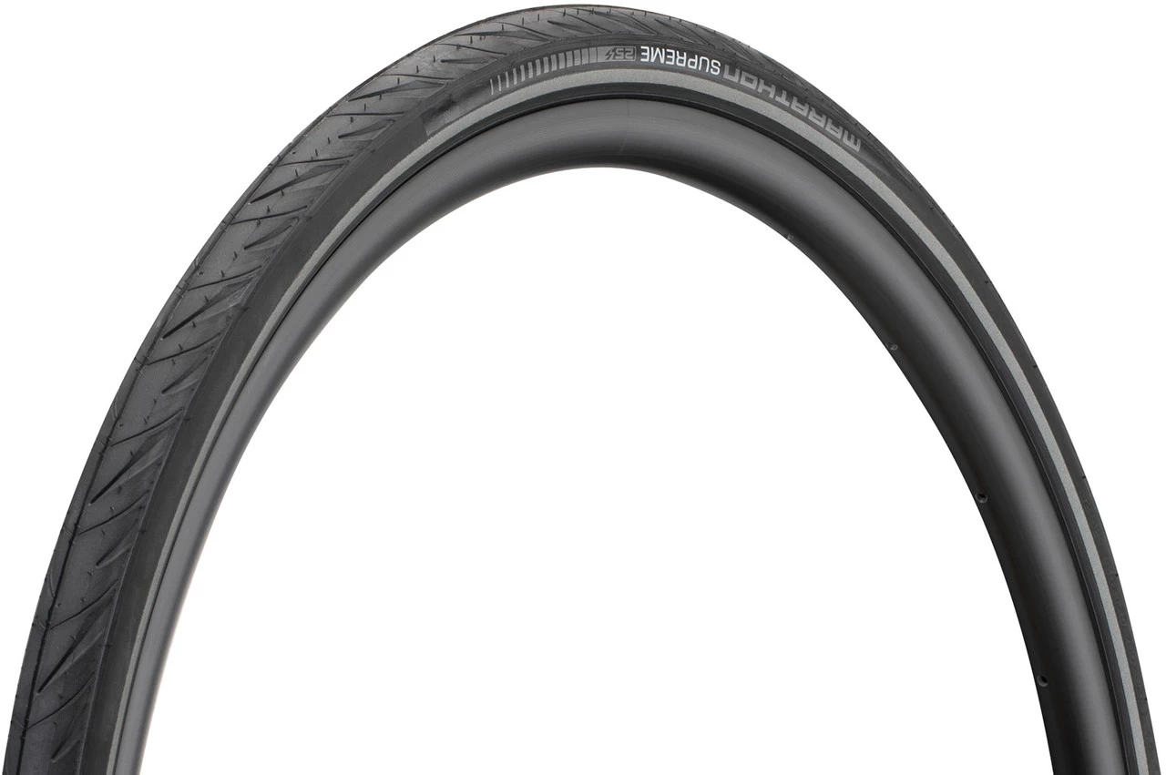 Der Schwalbe Marathon Supreme Evolution Faltreifen ist ideal für City- und Tourenbiker. Sein elegantes, futuristisches Profildesign sorgt für Speed und Dynamik. Sein OneStar Compound in der V-Guard Version ist ein verlässliches Leichtgewicht.