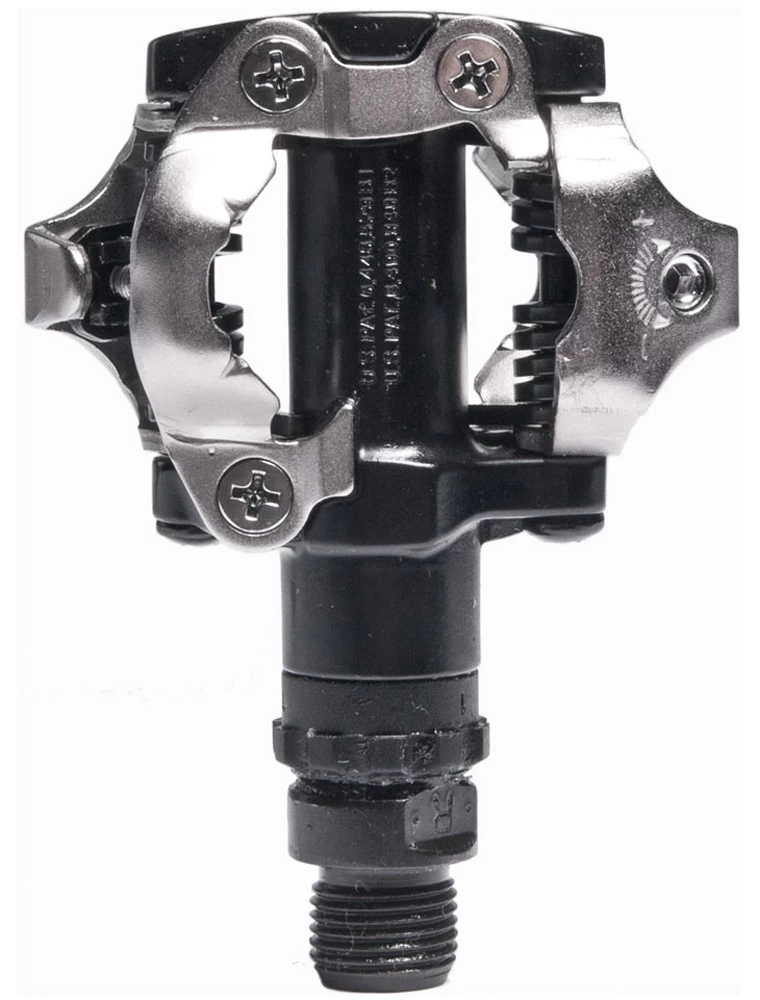 SPD ist ein 2-Loch-System, das von Off-Road-, Cyclocross- und Freizeitfahrern bevorzugt wird, da die Schuhplatte in der Sohle eingelassen ist und ein normales Gehen sowie mehr Bewegungsfreiheit ermöglicht (Beweglichkeit des Fußes vor dem Auslösen der Schuhplatte vom Pedal). SPD unterstützt auch die Entwicklung von Pedalen mit Klickpedal auf der einen und Plattformpedal auf der anderen Seite sowie bequeme Schuhoptionen mit eingelassener Schuhplatte.