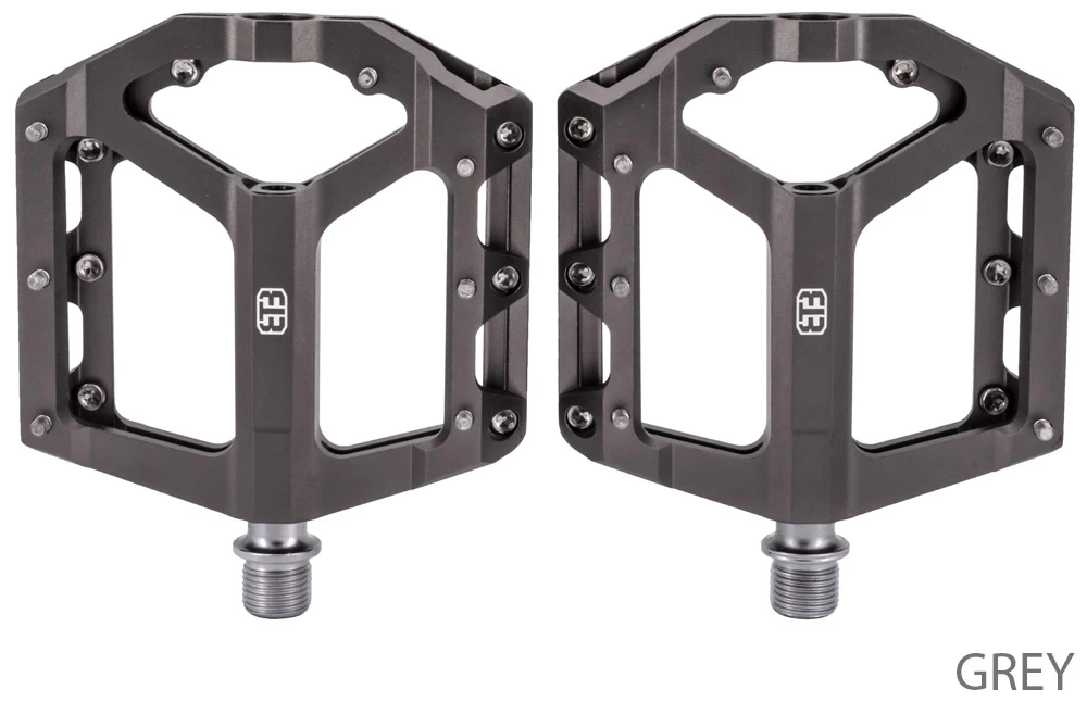 Die hochwertigen CNC-gefrästen TRIPLE EIGHT SL 2.0 Plattformpedale aus Aluminium mit einem aggressiv flachen Design und geringem Gewicht von nur 312 g / Paar. Die austauschbaren Pins und die große, griffige Standfläche sorgen für beste Griffigkeit und Sicherheit und die Cr-Mo-Achse mit dreifach abgedichtetem Industrielager mit LSL-Buchse für eine lange Lebensdauer.