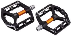 Die hochwertigen CNC-gefrästen TRIPLE EIGHT SLT 2.1 Plattformpedale aus Aluminium mit einem aggressiv flachen Design und geringem Gewicht von nur 294 g / Paar. Die austauschbaren Pins und die große, griffige Standfläche sorgen für beste Griffigkeit und Sicherheit und die Cr-Mo-Achse mit dreifach abgedichtetem Industrielager mit LSL-Buchse für eine lange Lebensdauer.